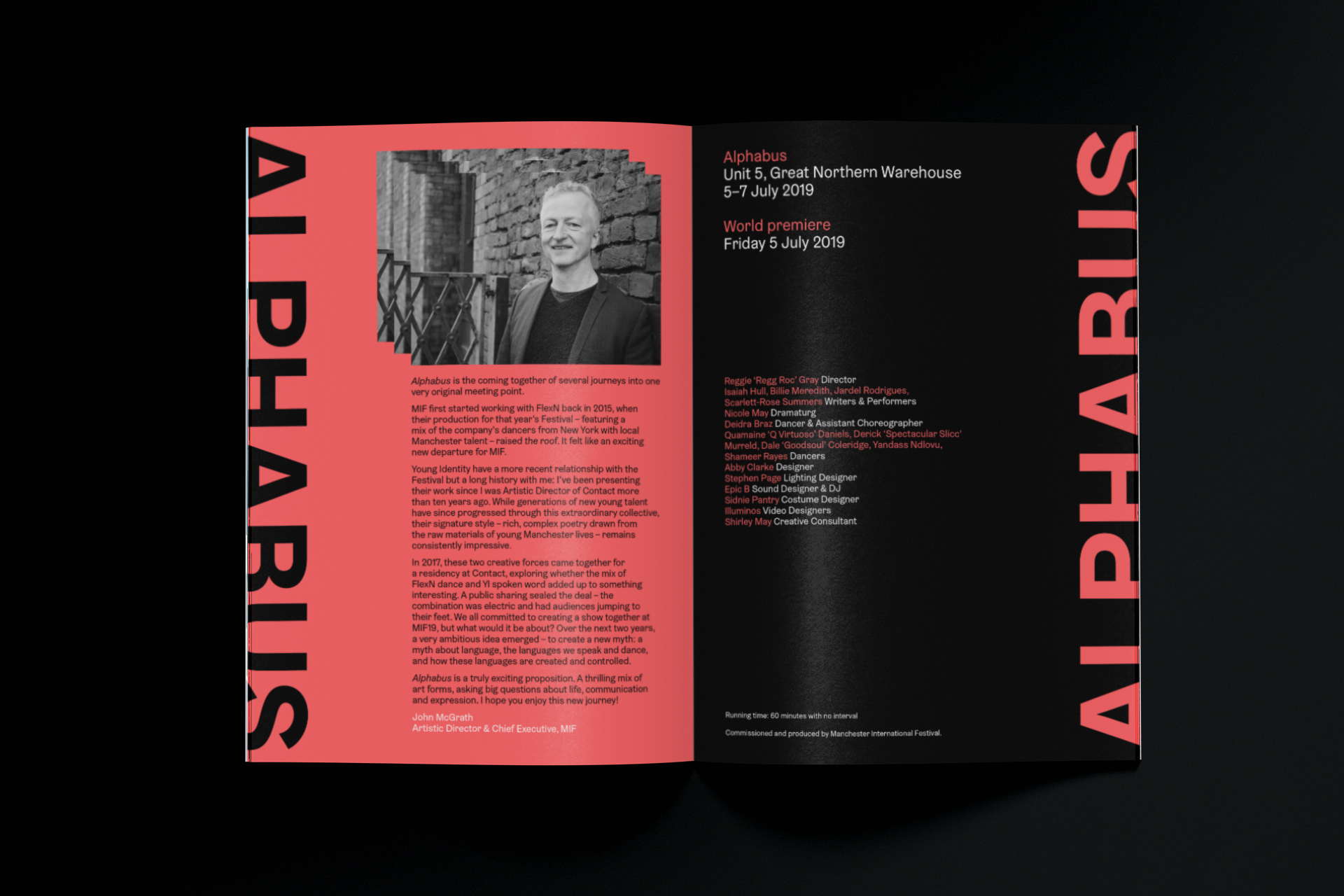 An identity for Alphabus, a theatrical dance performance that premiered at Manchester International Festival 2019, featuring FlexN and Young Identity; a collobration between spoken word and street dance.